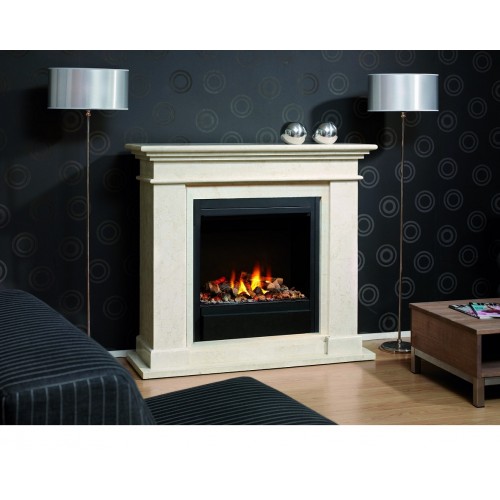 Der Korpus des hochwertigen Elektrokamins ist wahlweise aus poliertem/unpoliertem Fossil Stone, einer echten Steinart, die wie Marmor aussieht oder aus lackierten MDF-Platten (Mitteldichte Holzfaserplatte) erhältlich. Bei der Ausführung in Fossil Stone ist der Stein auf einen robusten MDF-Kern geklebt, um das Gewicht des Kaminumbaus zu minimieren.